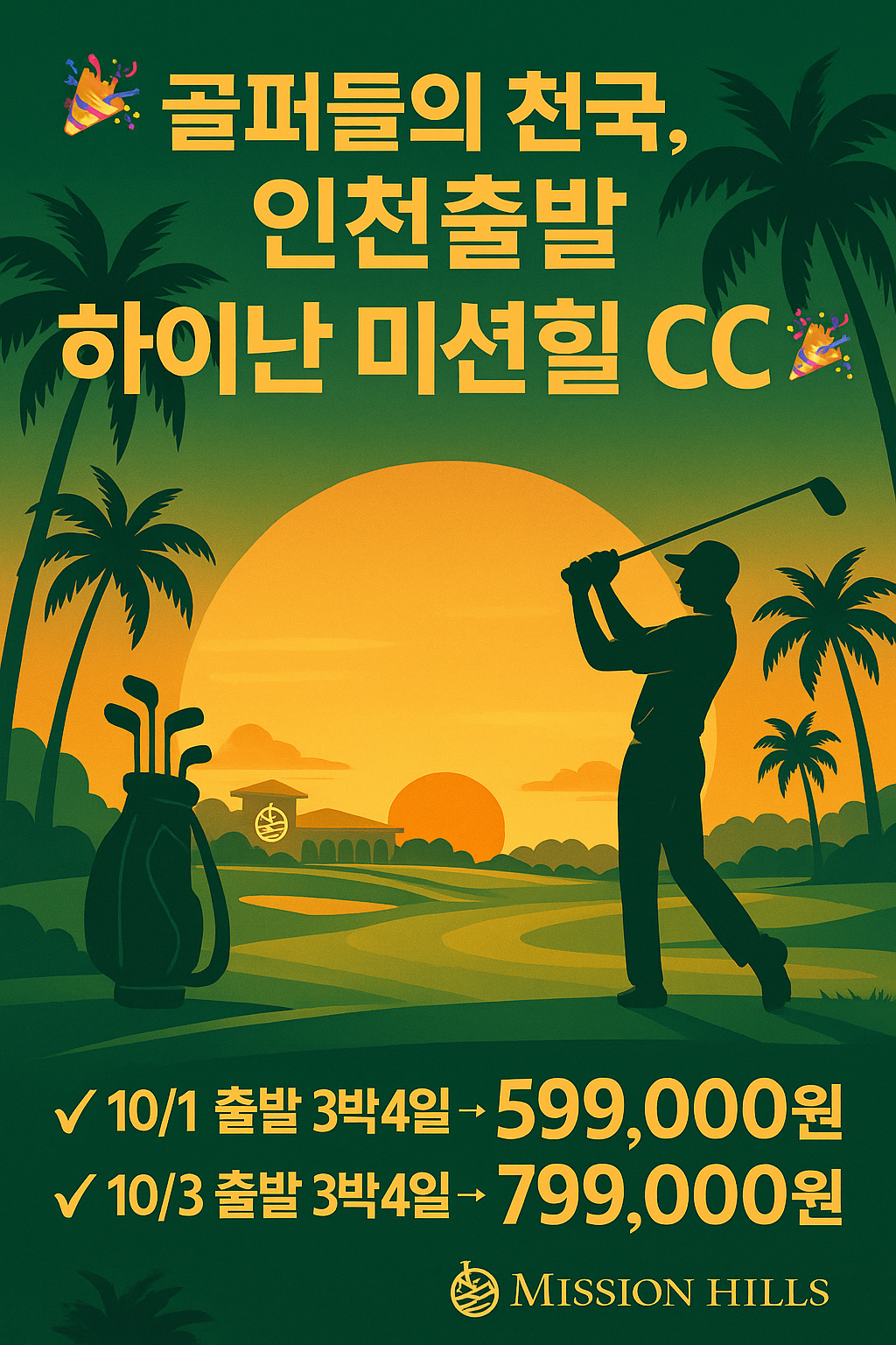 - #하이난미션힐골프 #추석연휴골프특가 #무제한골프라운드 #하이난골프투어 #추석골프여행#인천출발해외골프#골프여행사#해피투어
