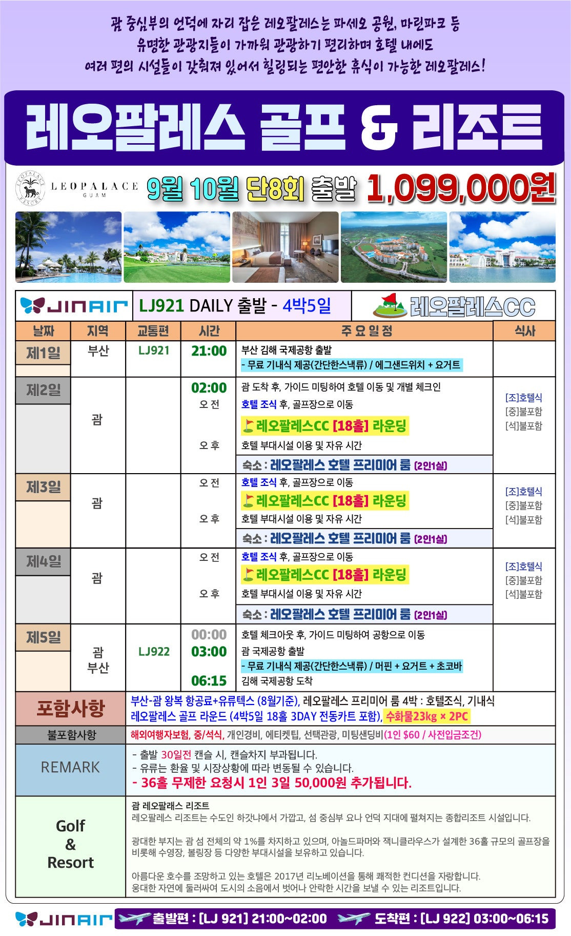 🌏 9월·10월 해외초청골프 – 괌 레오팔레스 골프&리조트 🌏