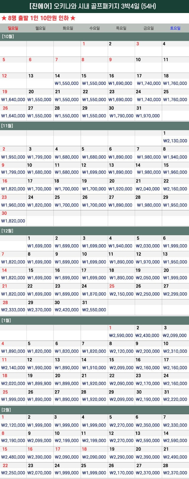 - 블럭요금 적용, 항공 소진 시 인상될 수 있음