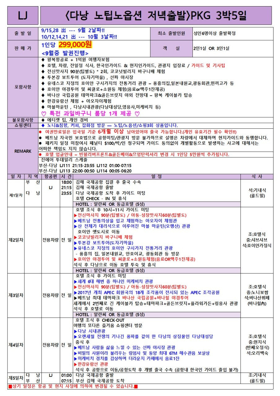 [부산출발 다낭 패키지 – 299,000원 노팁·노옵션, 10월 단 3회 출발 초특가] 본문