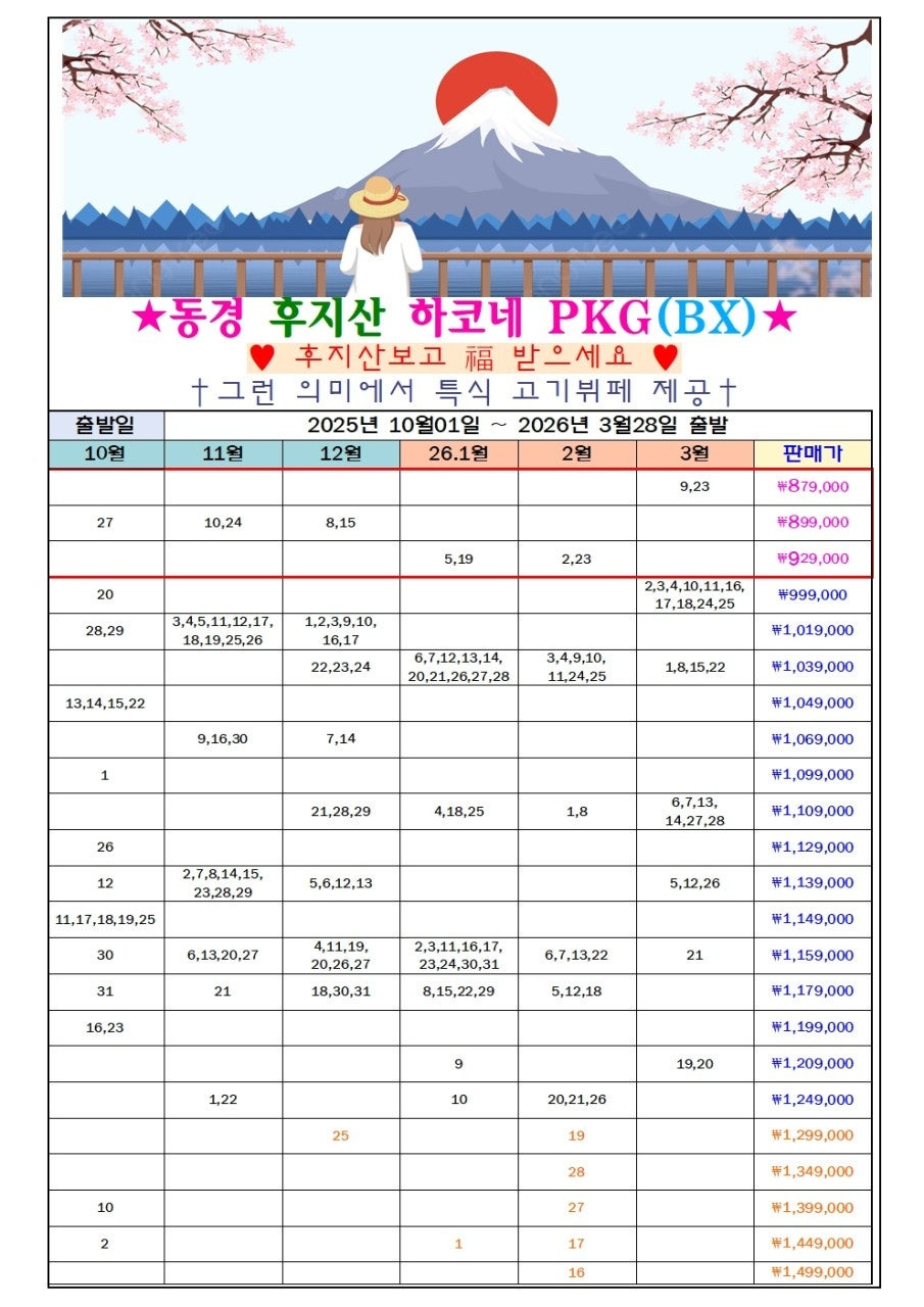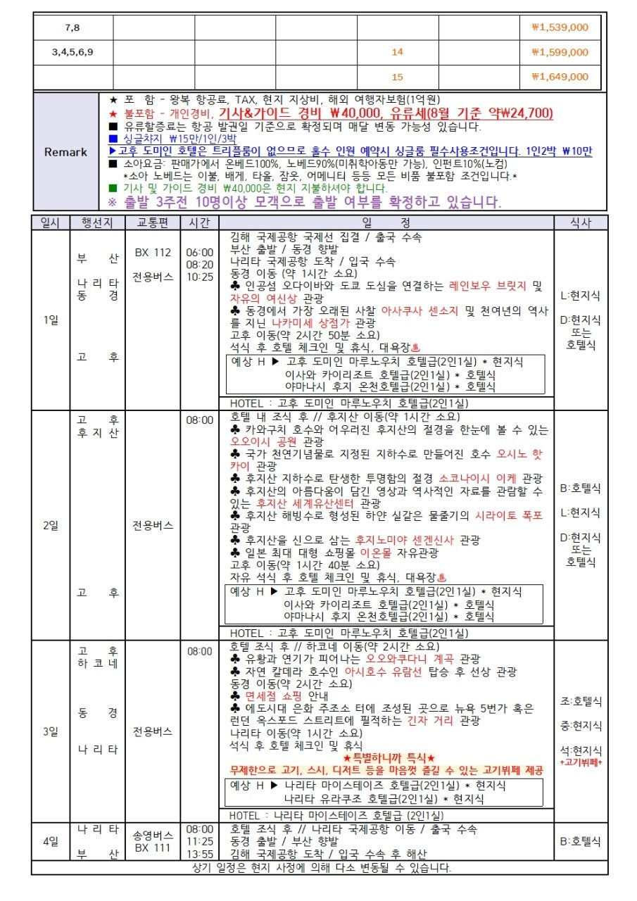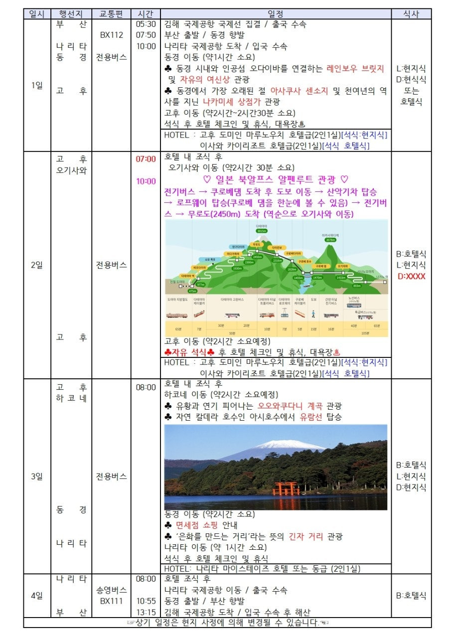 부산출발일본여행[동경여행 BEST] 부산출발 맞춤 패키지 – 알펜루트·쿠사츠온천·후지산·시내관광 본문