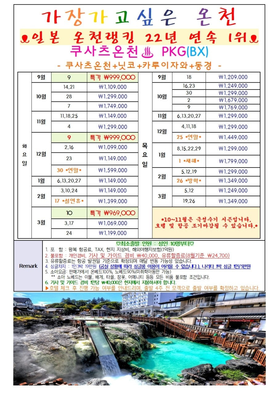 - 쿠사츠 온천: 21년 연속 일본 온천 1위