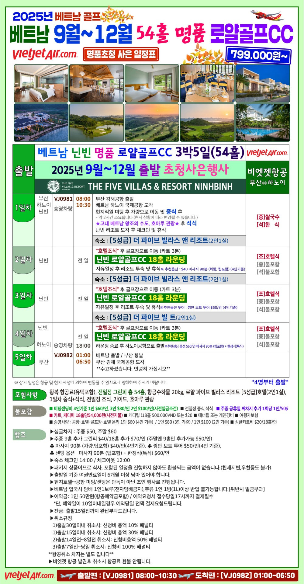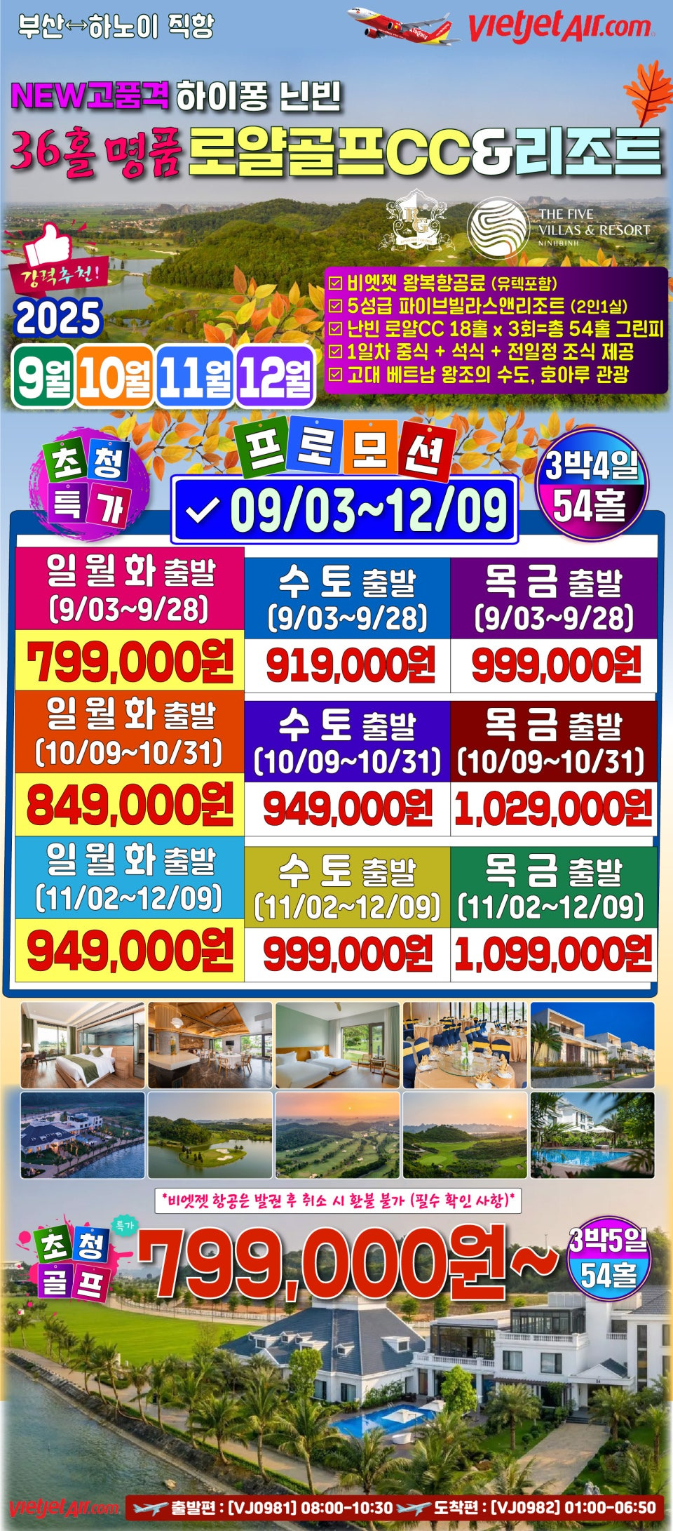 【부산출발해외골프】하노이·닌빈 로얄 골프 & FIVE 리조트 특급패키지🎆 9월~12월 LUXURY GOLF TOUR✨ 품격 골프&관광 투어!
