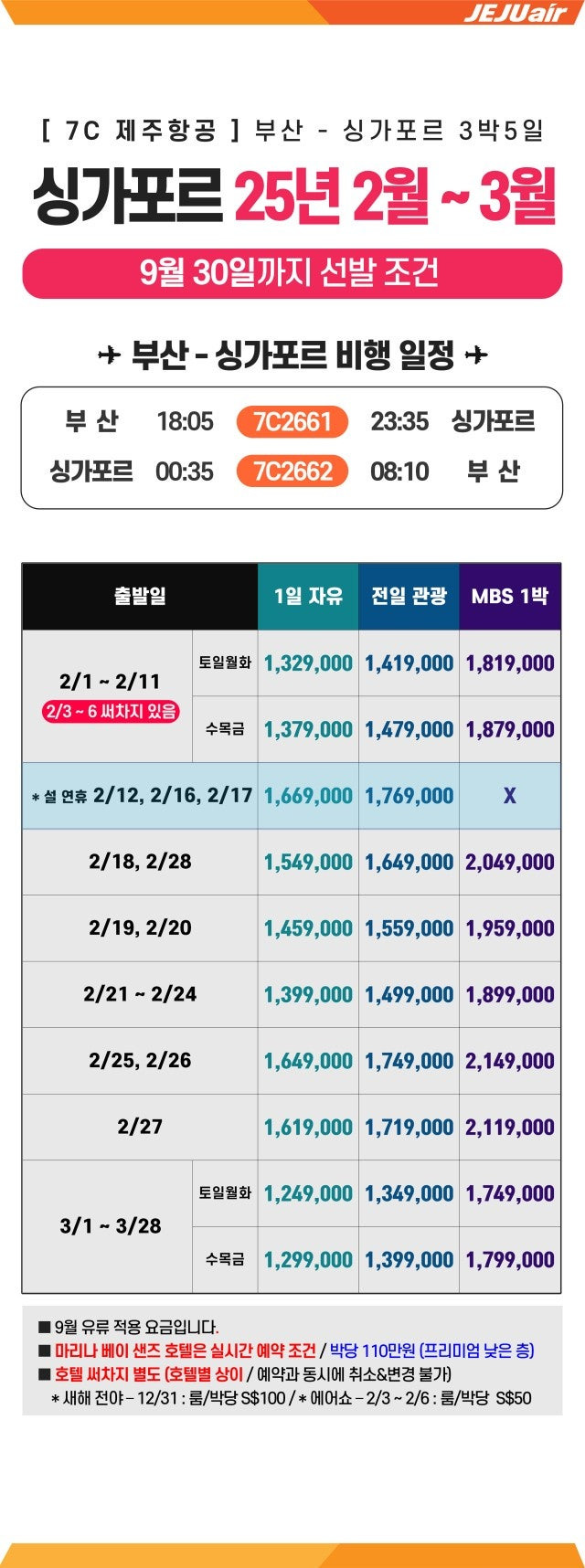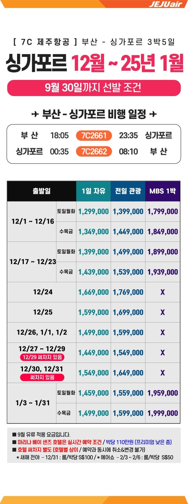 부산출발해외여행🌏 [7C] 제주항공 싱가포르 동계특가 출시 ✈ 2026년 3월까지! 노쇼핑 · 특식 · 다양한 일정 선택 가능!