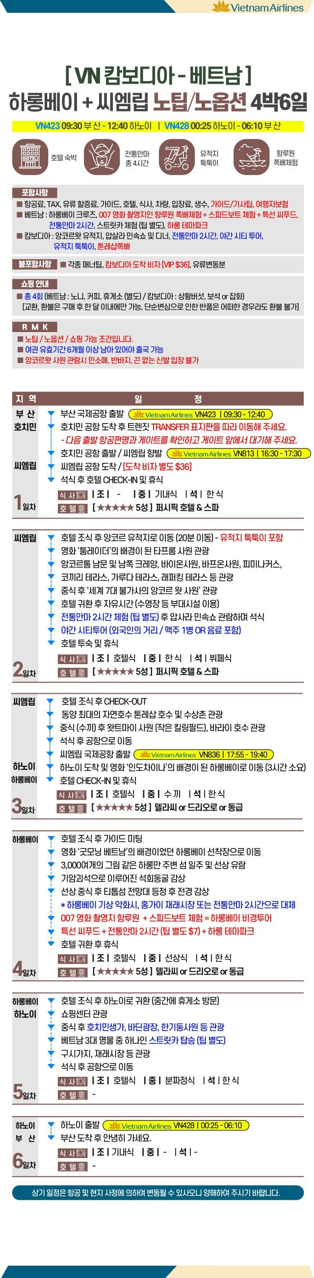 부산 출발 ✈ 베트남+캄보디아 4박6일 효도/가족여행 특선💐