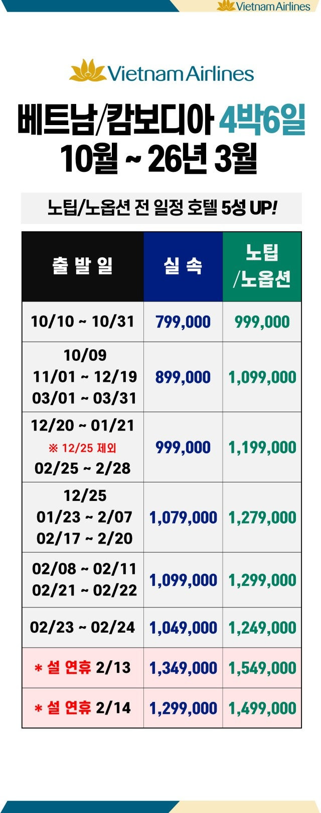 🎁 노노팩(5성) : 999,000원부터 ($290 상당 옵션/팁 포함)