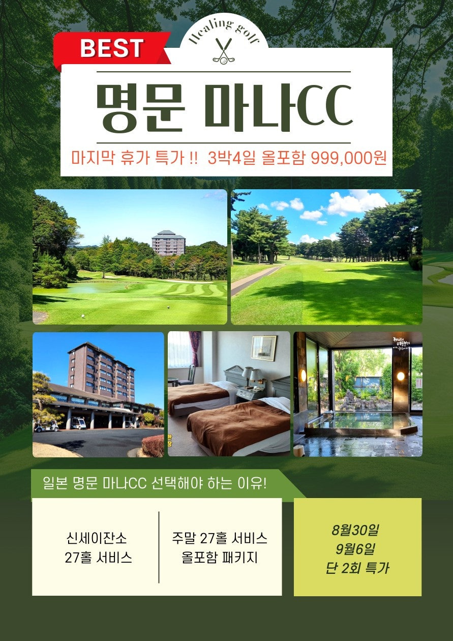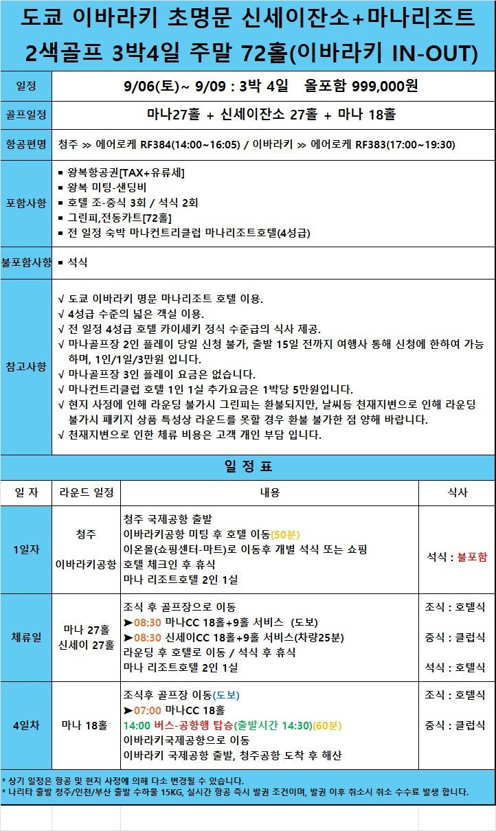 - #추석연휴골프 #청주출발골프 #인천출발골프 #이바라키골프 #일본골프투어 #록힐CC #마나CC #온천리조트골프 #일본프로테스트코스 #가성비골프여행 #2색골프투어 #해피투어 #이지숙실장
