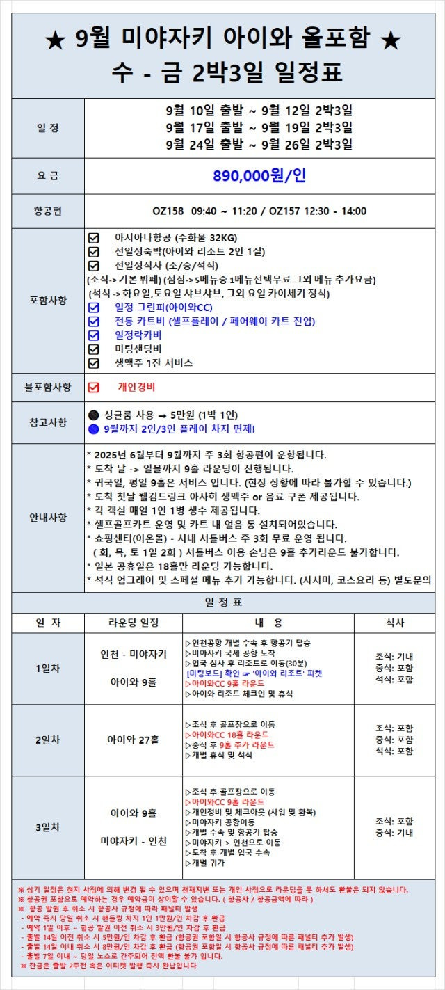 [일본 미야자키 아이와 골프 2박3일 올포함 패키지] ✈