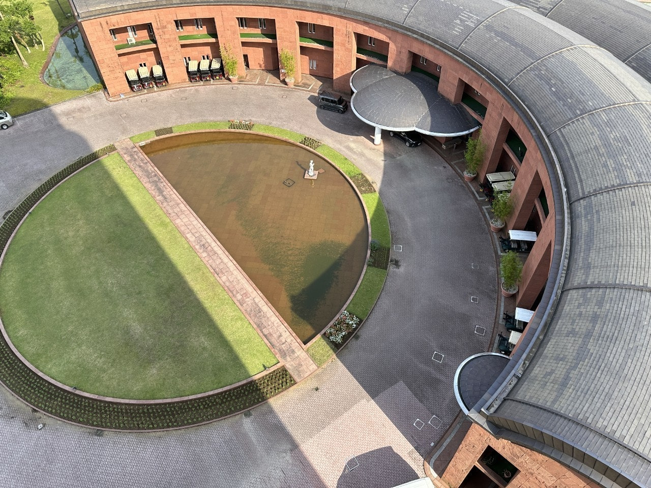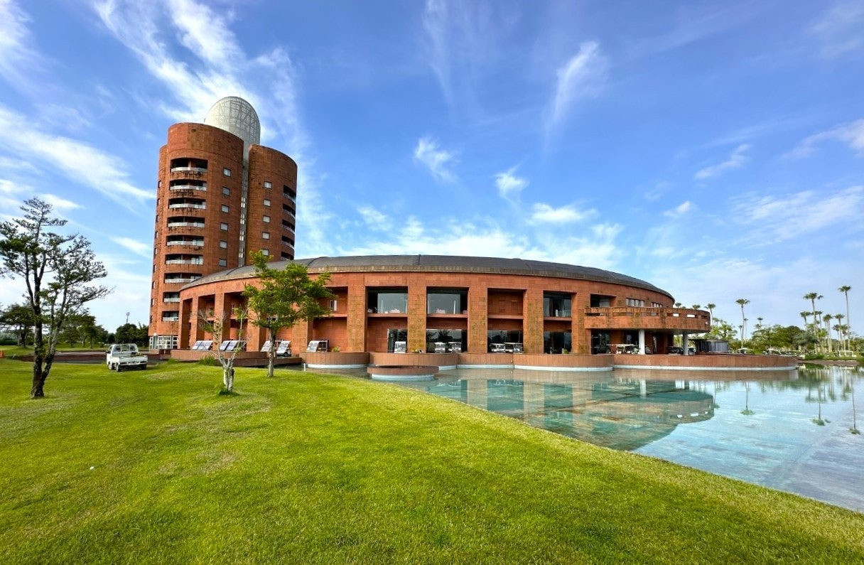 일본이 자랑하는 세계적인 건축가 #쿠로가와키쇼의설계로 이루어진 참신한 모양과 약동하는 네잎클로버 모양의 리조트 건물은 인도 사암으로 덮어져 있으며 , 모양은 중세 유럽의 성을 방불케합니다.