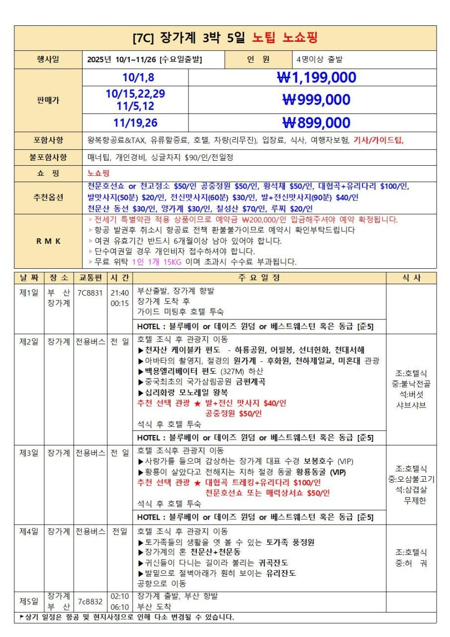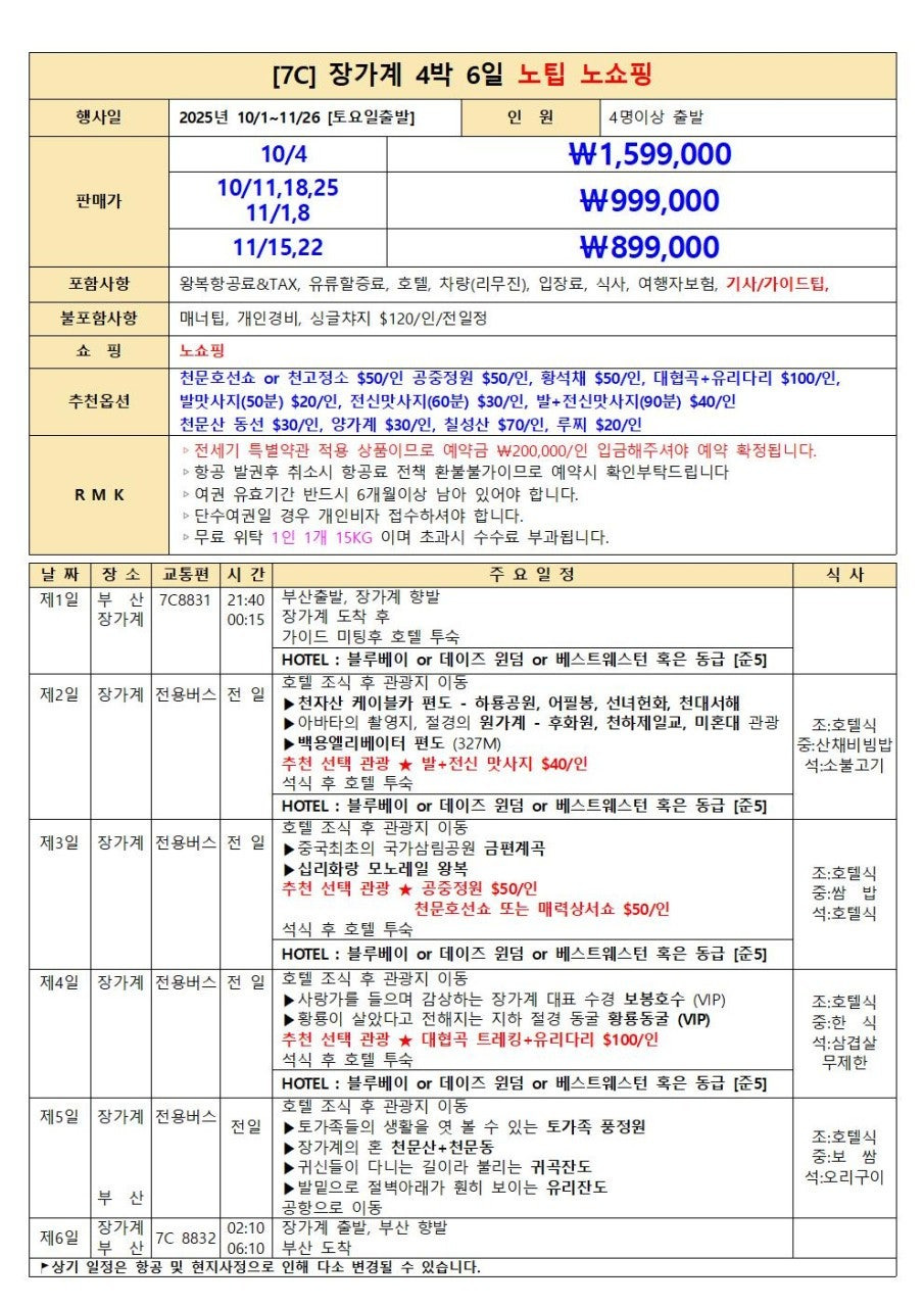 [부산출발 장가계 전세기 여행] 제주항공 타고 3박5일 or 4박6일, 가을 절경 투어! 본문