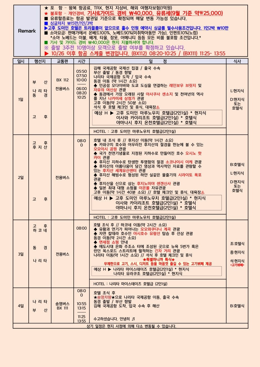 | 부산출발일본여행🌈 북해도의 가을, 설레임 가득한 여행 🌈 (1) | 2025.09.04 |
