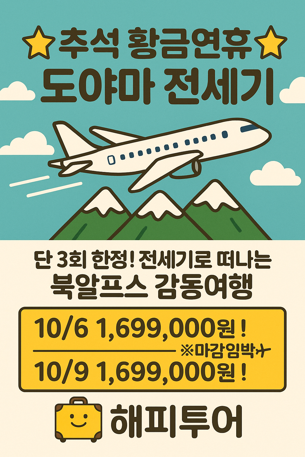 ✈ 부산출발 도야마 전세기 – 추석 황금연휴 단 3회 한정 패키지 🌟