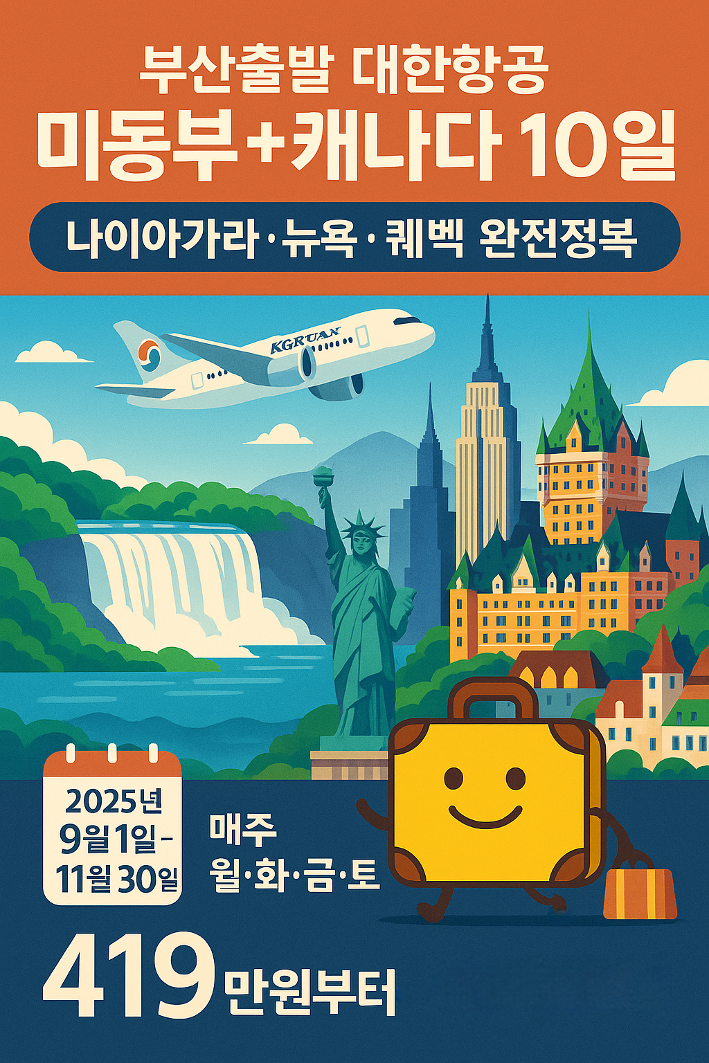 부산출발 대한항공 미동부+캐나다 10일 ✈️ 419만원부터 본문