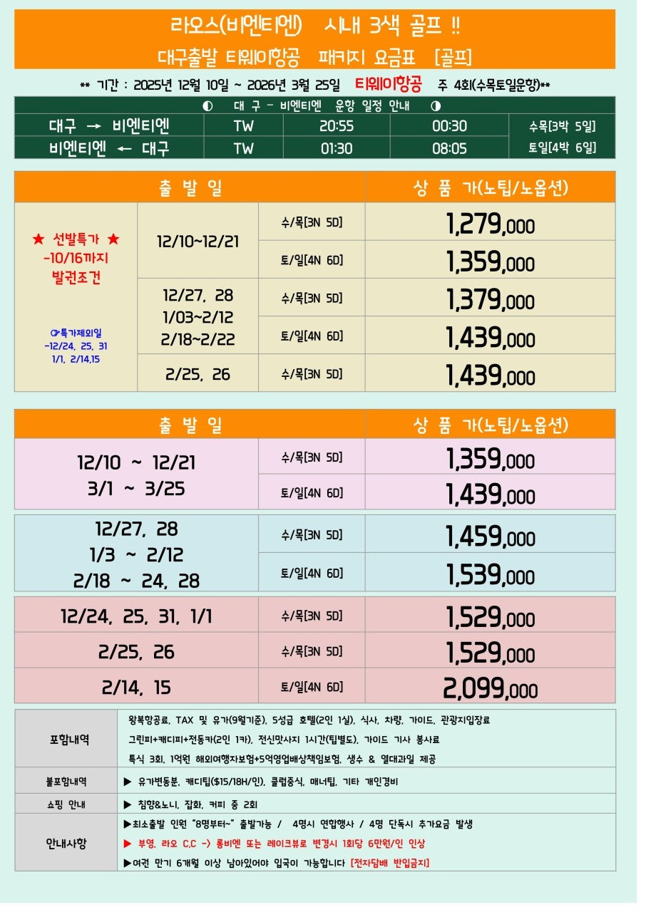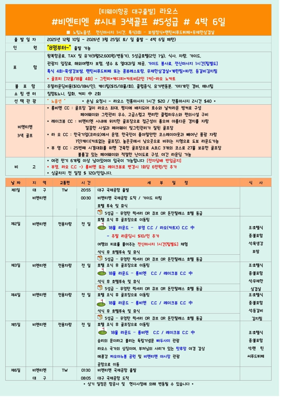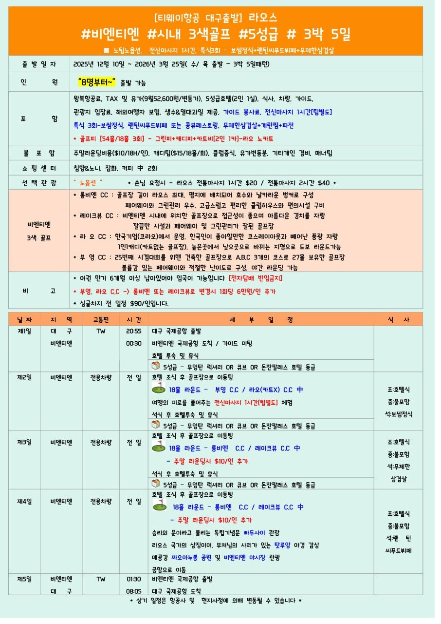 🌏 라오스 3색 골프 ✈️ 대구출발 1,279,000원부터 본문