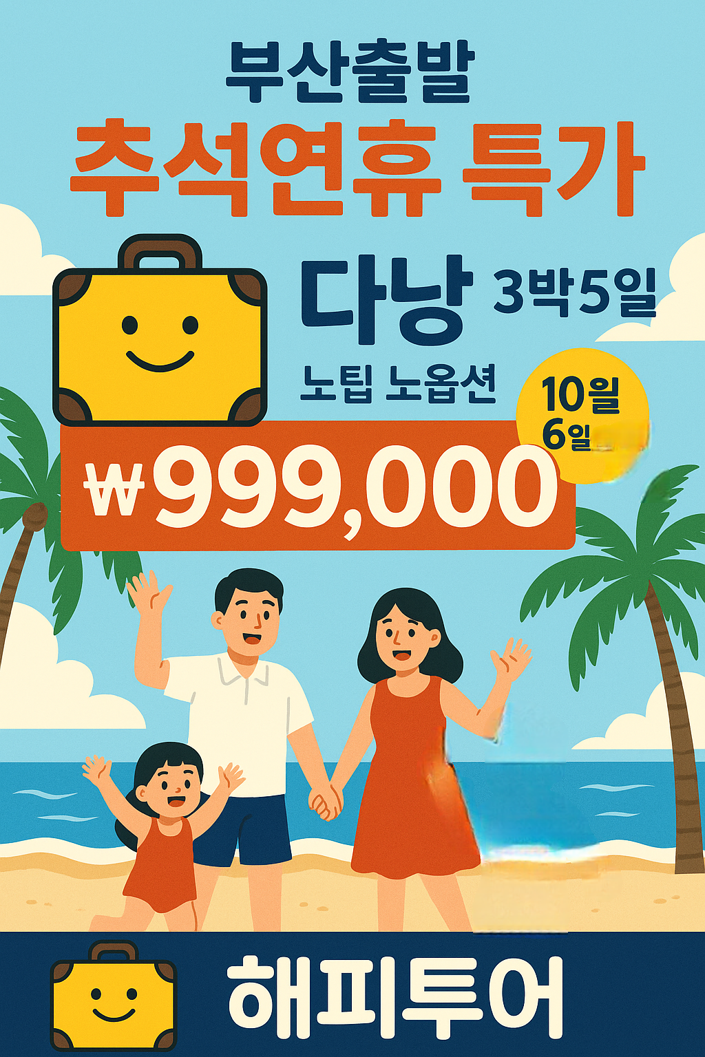#해피투어 #이지숙실장 #다낭여행 #부산출발다낭 #노팁노옵션 #다낭마사지 #호이안씨클로 #바나산골든브릿지 #부산출발해외여행추천 #부산출발해외여행 #부산직항해외여행 #해피투어 #특가해외여행 #땡처리해외여행 #부산패키지