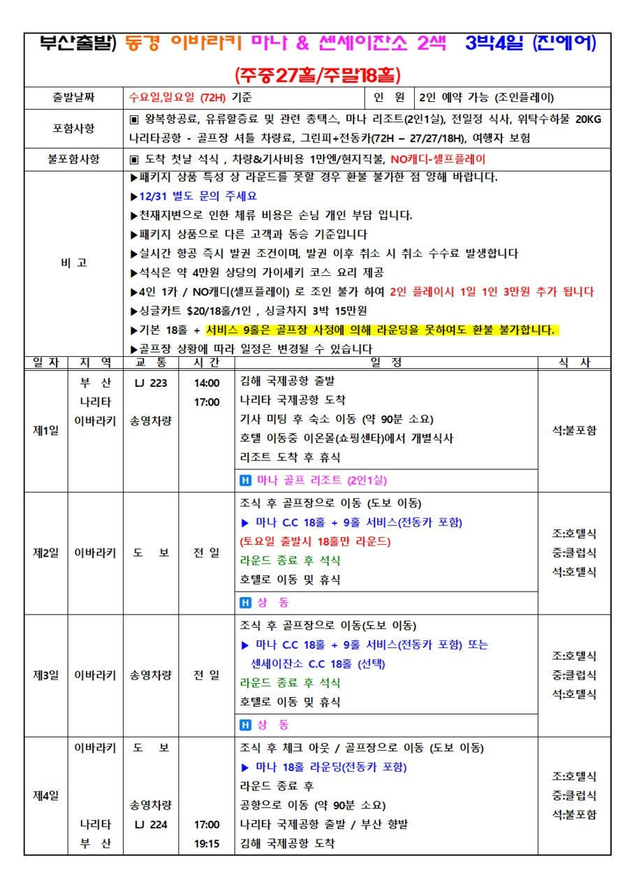 - 그린피 + 카트비 + 여행자보험 포함
