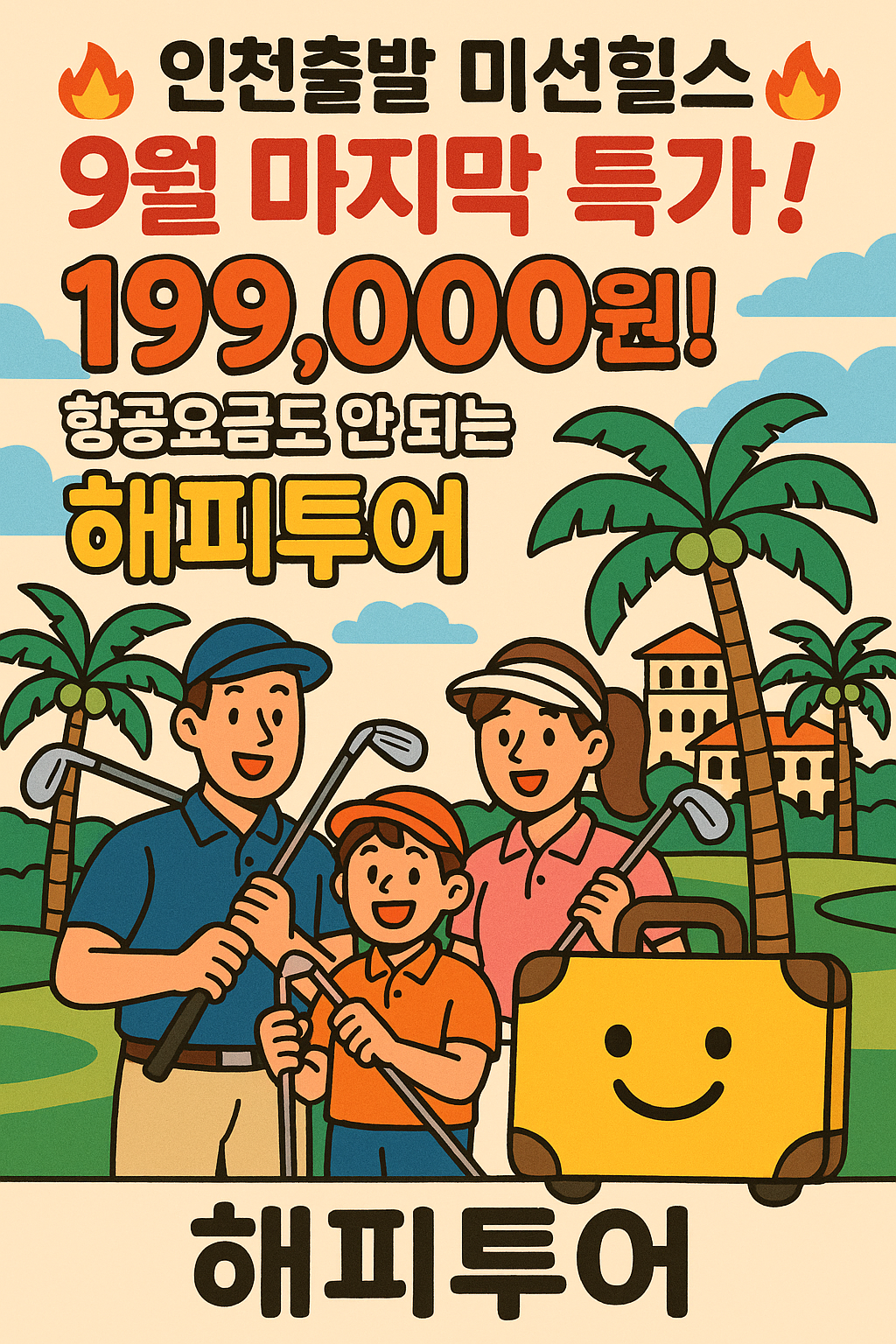 인천출발해외골프✨ 미션힐스 9월 마지막 특가 ✨ 4박 5일 / 199,000원 / 무제한 라운드 & 본관 숙박 확정! 본문