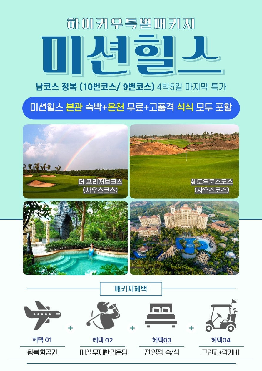 - #하이난미션힐골프 #추석연휴골프특가 #무제한골프라운드 #하이난골프투어 #추석골프여행#인천출발해외골프#골프여행사#해피투어