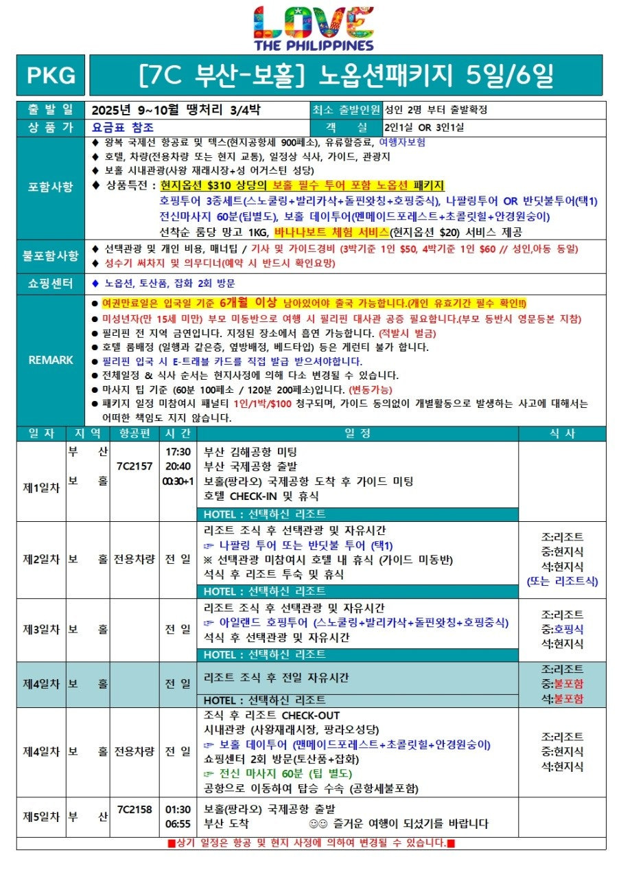 #부산출발보홀 #보홀특가여행 #제주항공보홀 #호핑투어포함 #노옵션보홀 #솔레아리조트 #돌핀베이리조트 #해피투어