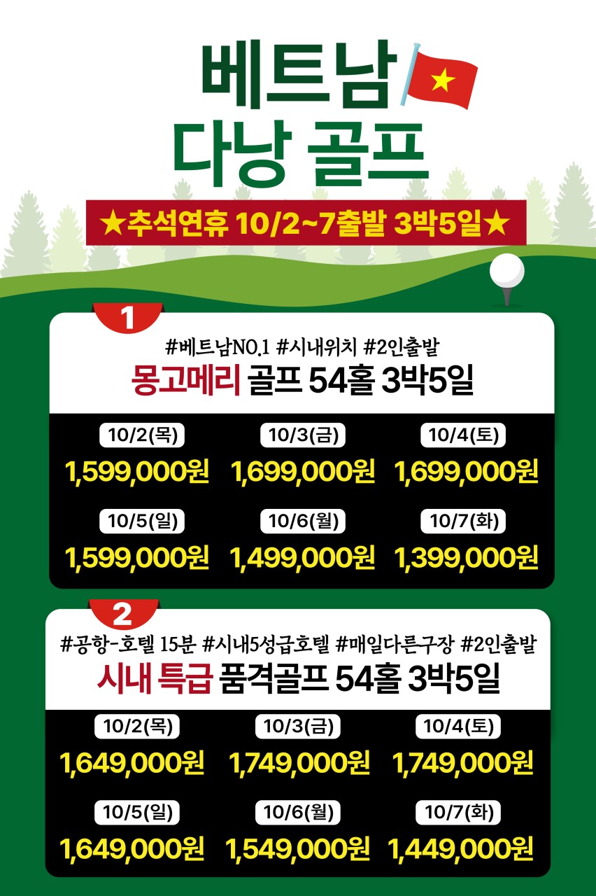 🔥 추석 다낭 골프 특가! 몽고메리·바나힐·빈펄 명문 코스 총집합 🔥 본문
