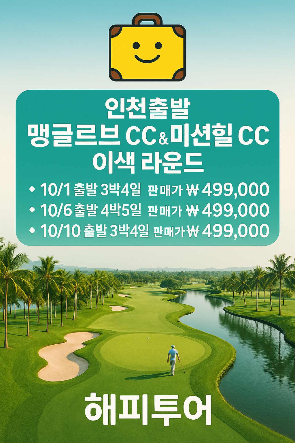 | 인천출발해외골프⛳ 중국 하문 남태무CC 4박5일 – 골프 동호회·가족여행 추천 🏌 (3) | 2025.09.18 |