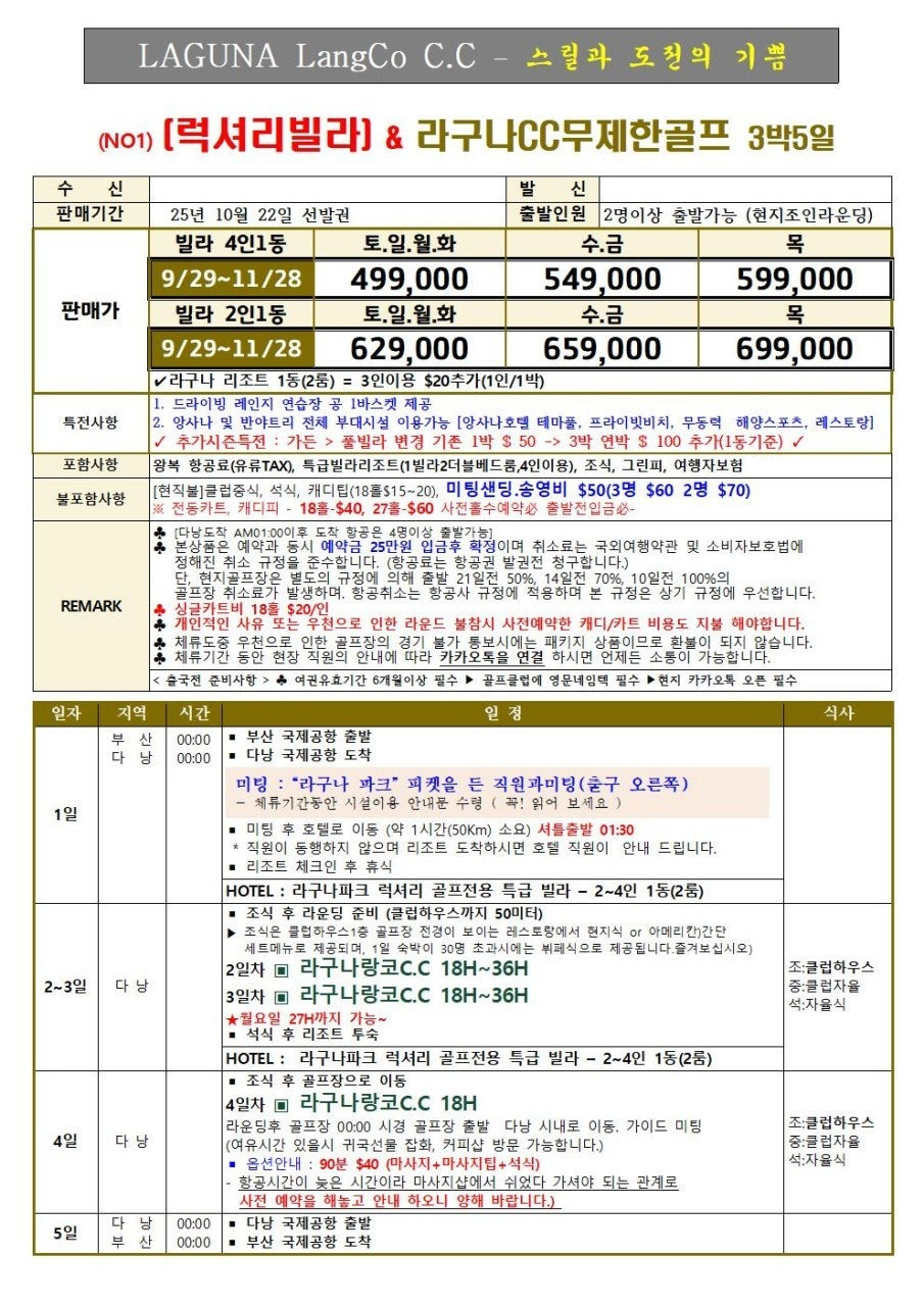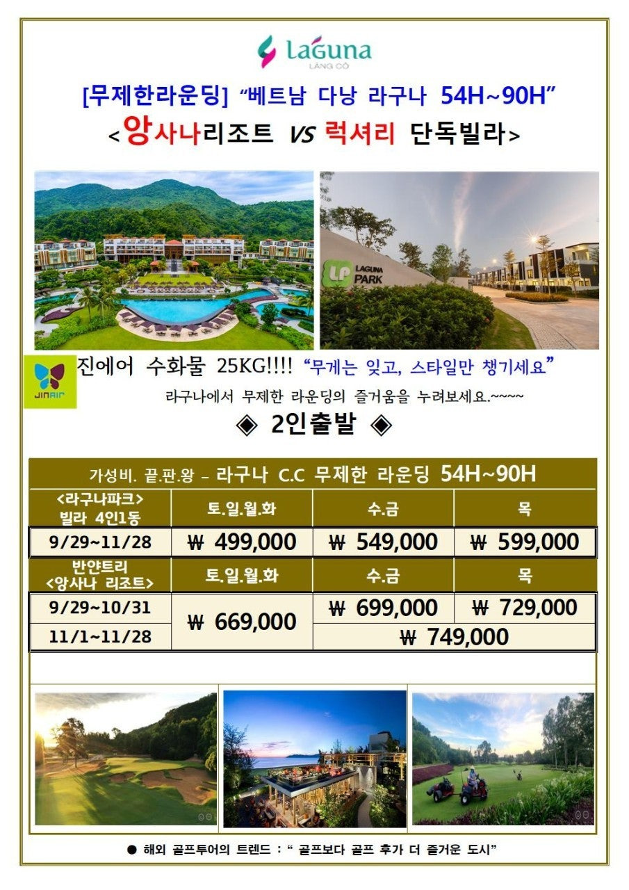 | 🎊 부산출발 ✈ 베트남 다낭 3색 골프 동계 패키지 🎊 – 진에어 직항 / 노팁·노쇼핑 옵션 선택 가능 – (2) | 2025.09.23 |