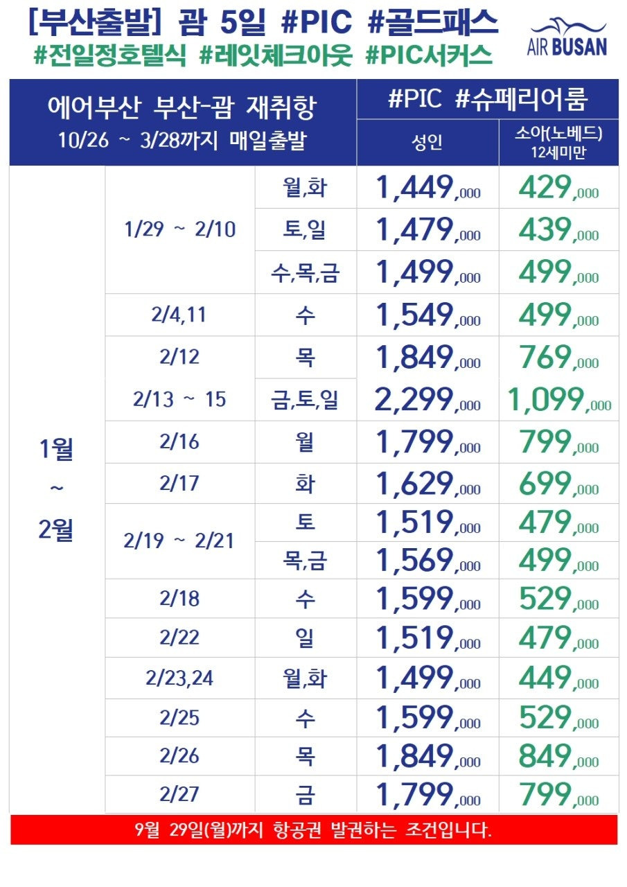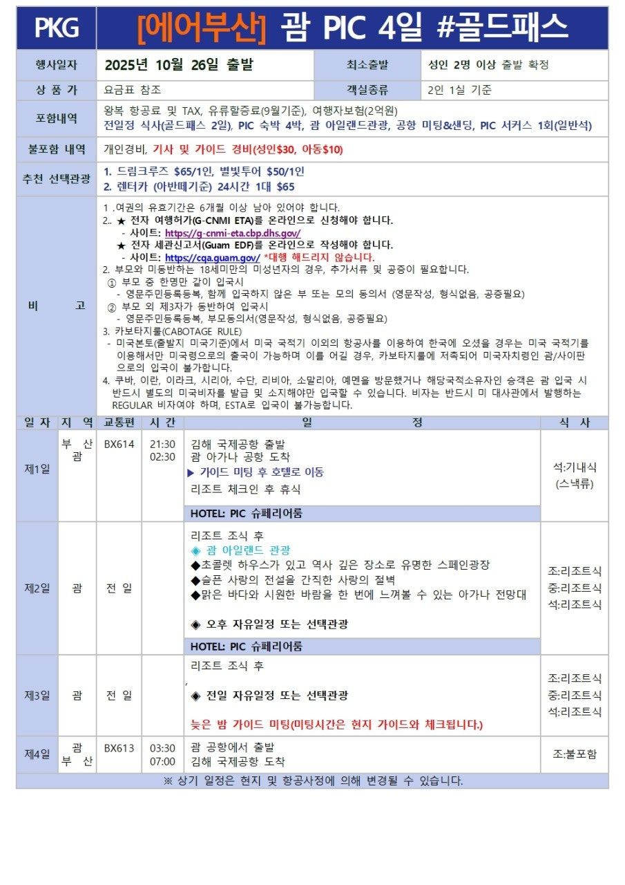 💝 에어부산이 돌아왔다! 괌 PIC 골드패스 패키지 (4일/5일) 💝