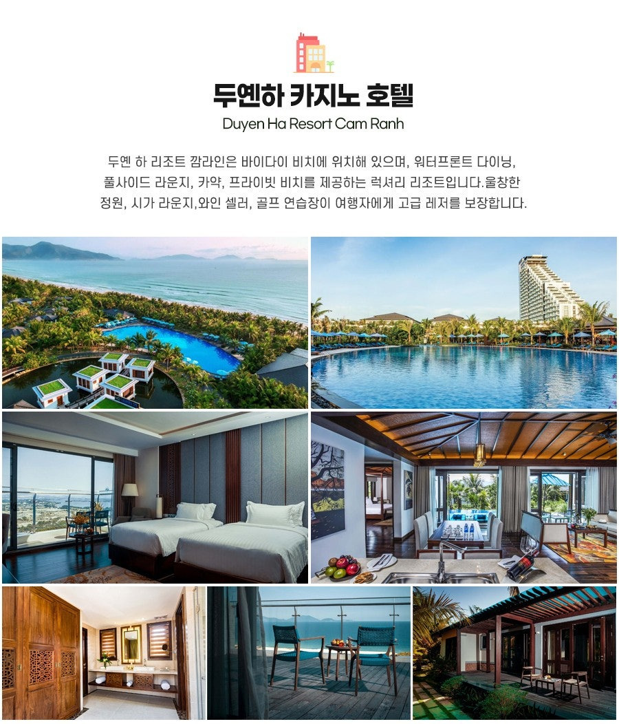 | 숙박 | 두옌하 카지노 리조트 (측면 오션뷰) | 럭셔리 휴양 및 밤 시간 엔터테인먼트 해결 |