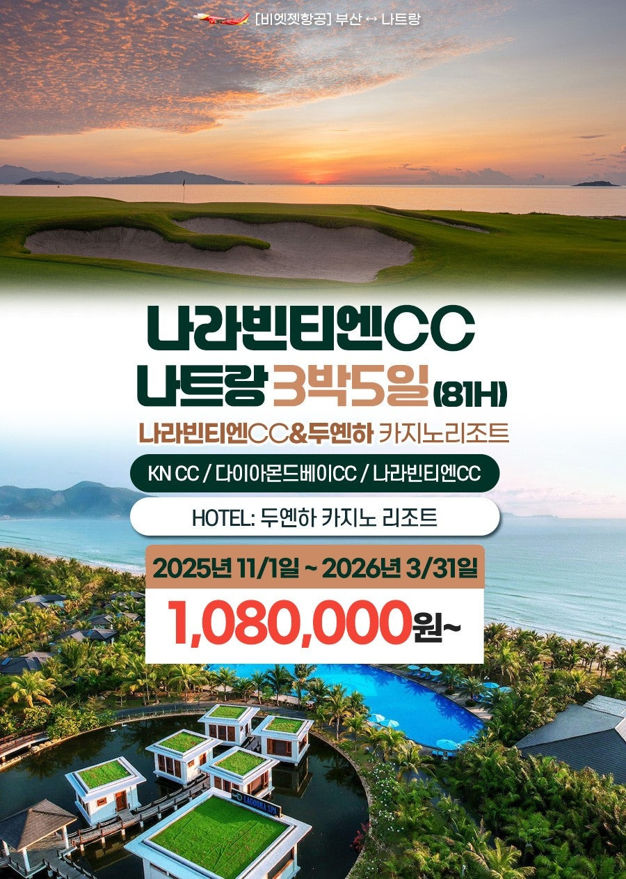 부산출발해외골프] 나트랑 '나라빈티엔 27홀' 패키지! 노쇼핑/노옵션, 두옌하 카지노 리조트 이용 가치 분석 본문