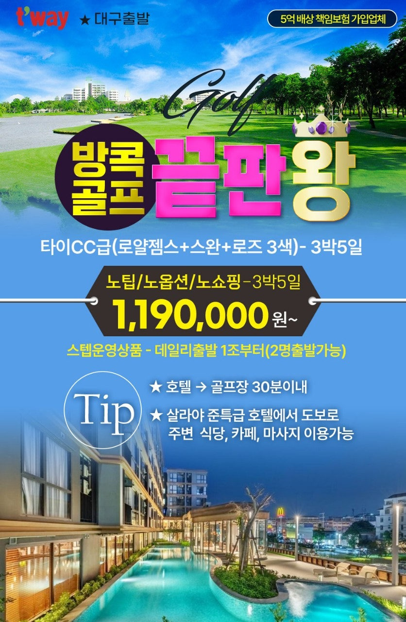 방콕에서의 편안함과 럭셔리 골프의 완벽한 조화! 이동의 최소화가 주는 여유로움을 지금 바로 경험하세요. 진정한 힐링 골프를 원한다면 이 상품이 정답입니다!