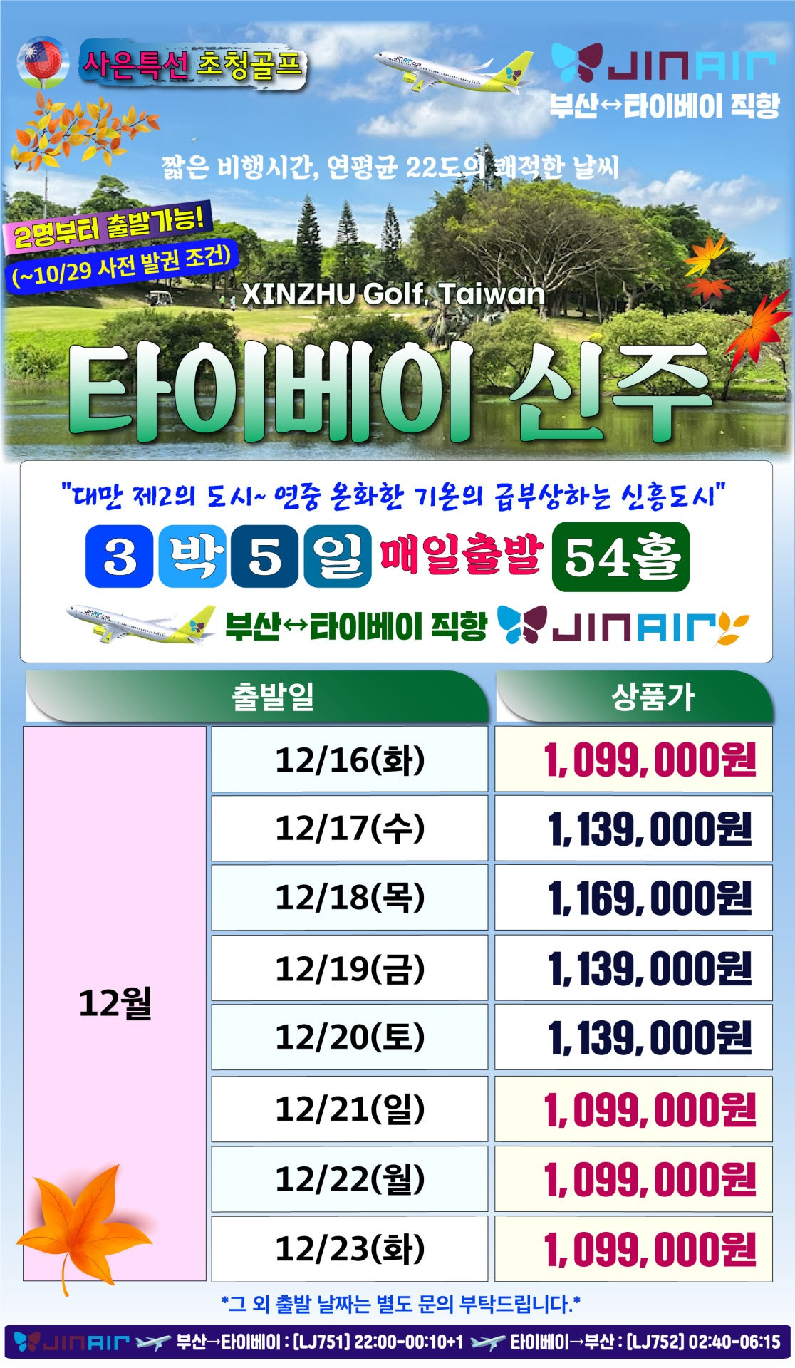 [부산출발해외골프] 타이베이 신주 3색 골프 1,099,000원의 가치! 골프 경비 ALL 포함 및 2인 출발 조건 분석 본문