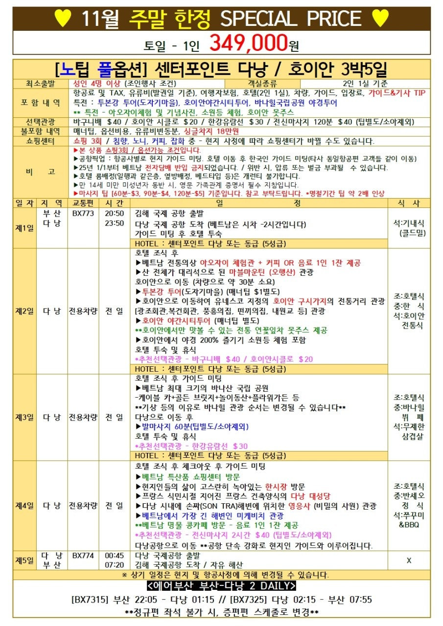 #다낭노팁 #센터포인트분석 #34만원특가 #노옵션VS풀옵션 #5성급호텔 #룸업그레이드 #호이안소원등 #10월29일마감 #여행실속 #티스토리여행 #다낭특가 #11월성수기 #월드체인 #해피투어 #여행꿀팁#부산패키지#부산출발해외여행추천 #부산출발해외여행 #부산직항해외여행 #해피투어 #특가해외여행 #땡처리해외여행 #해피투어