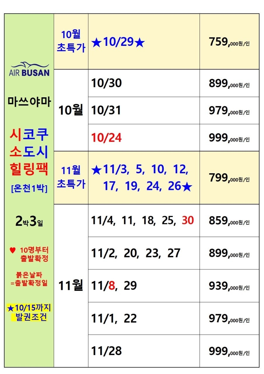 해피투어의 마쓰야마 힐링팩은 10월 26일부터 매일 출발하는 에어부산 직항을 이용해, 짧은 2박 3일 일정에도 최고의 만족도를 제공합니다.