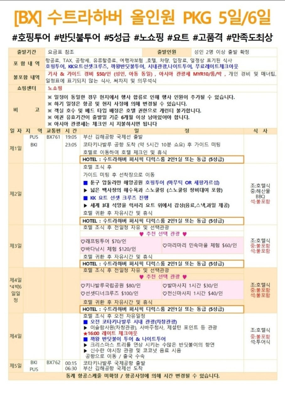 #코타키나발루분석 #수트라하버퍼시픽 #레이트체크아웃특전 #노쇼핑패키지 #선셋요트크루즈 #반딧불투어 #호핑투어 #부산직항 #에어부산 #코타키나발루특가 #10월23일마감 #여행실속 #특급호텔 #올인원PKG #티스토리여행#부산출발해외여행추천 #부산출발해외여행 #부산직항해외여행 #해피투어 #특가해외여행 #땡처리해외여행 #부산출발패키지