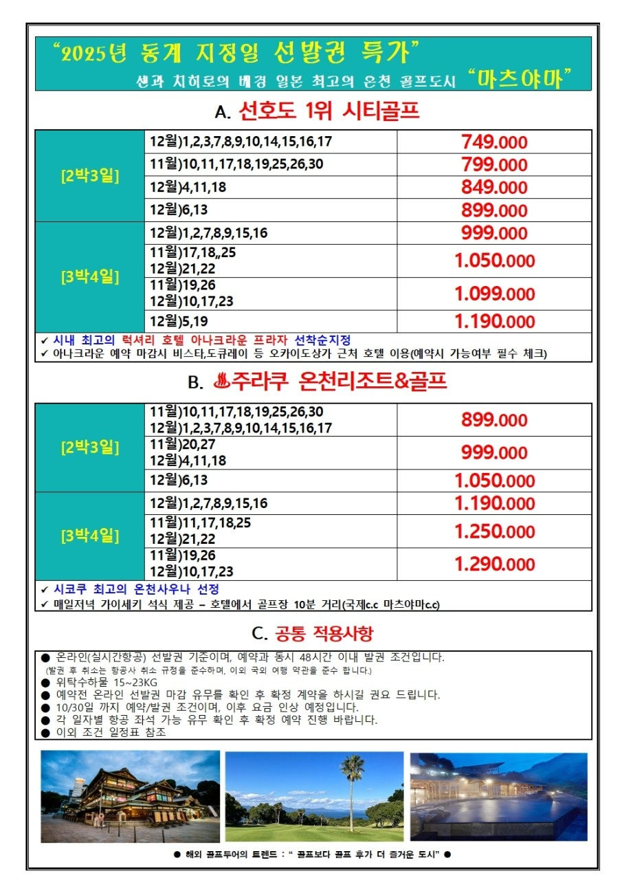 《부산출발일본골프☆마쓰야마골프》[긴급분석] 마츠야마 골프 특가! 749,000원 시티 vs 899,000원 온천, 두 가지 테마 패키지 비교