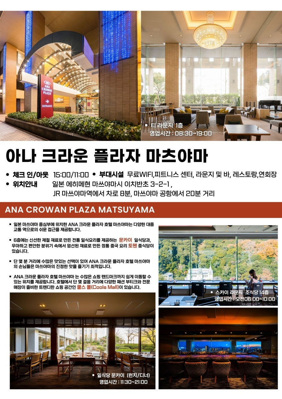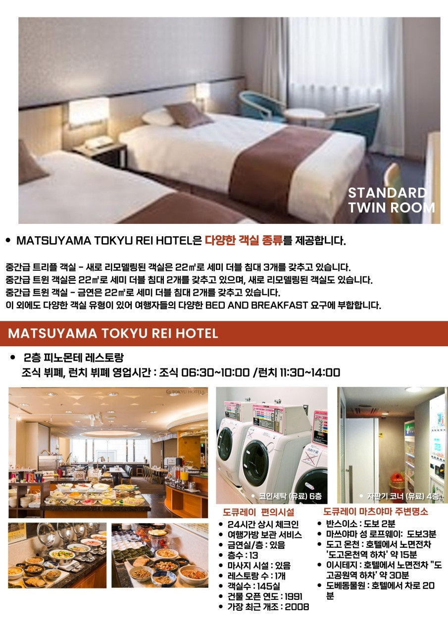 | 핵심 혜택 | 마츠야마 성 무료 입장권, 3000년 온천 무료 입욕권 | 마츠야마 성 무료 입장권, 3000년 온천 무료 입욕권 |