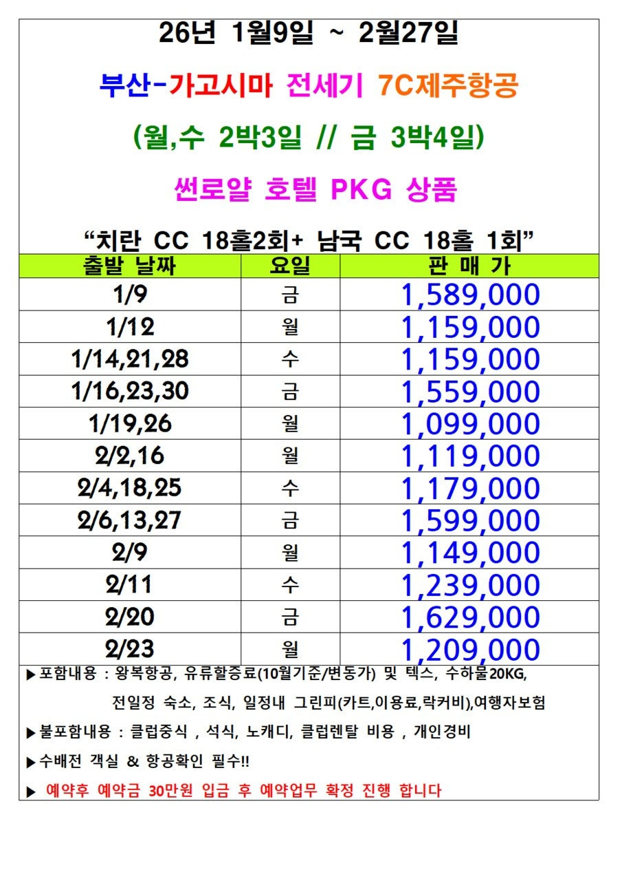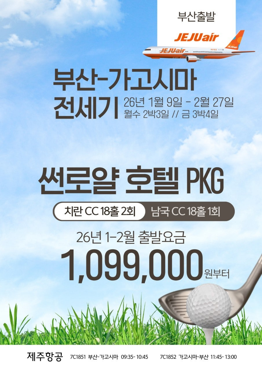 《부산출발일본골프♥가고시마골프》[긴급분석] 부산-가고시마 전세기 취항! 썬로얄/오리엔탈 호텔 선택 및 2인 출발 조건 심층 분석 본문
