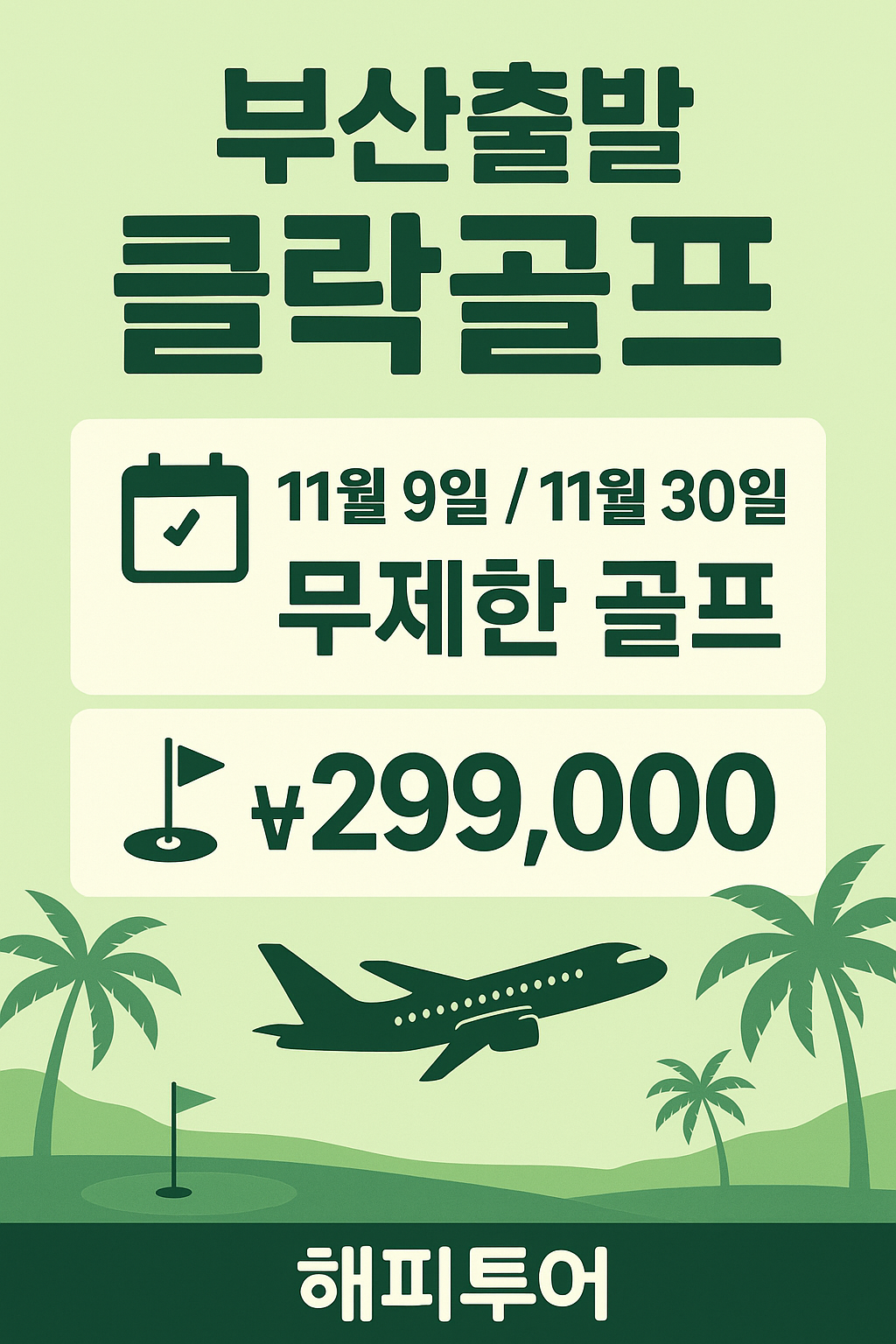《부산출발해외골프특가♥클락골프 299,000》[긴급분석] 클락 무제한 골프 299,000원! 4박 6일 144홀 & 레이트 체크아웃 조건 심층 분석 본문