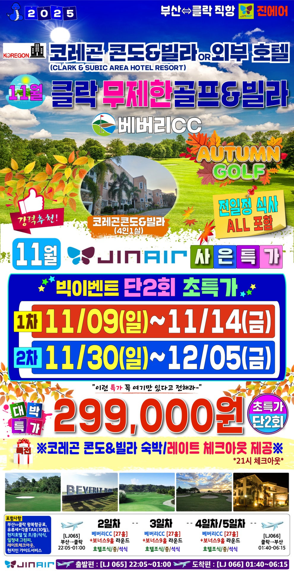 《부산출발해외골프특가♥클락골프 299,000》[긴급분석] 클락 무제한 골프 299,000원! 4박 6일 144홀 & 레이트 체크아웃 조건 심층 분석