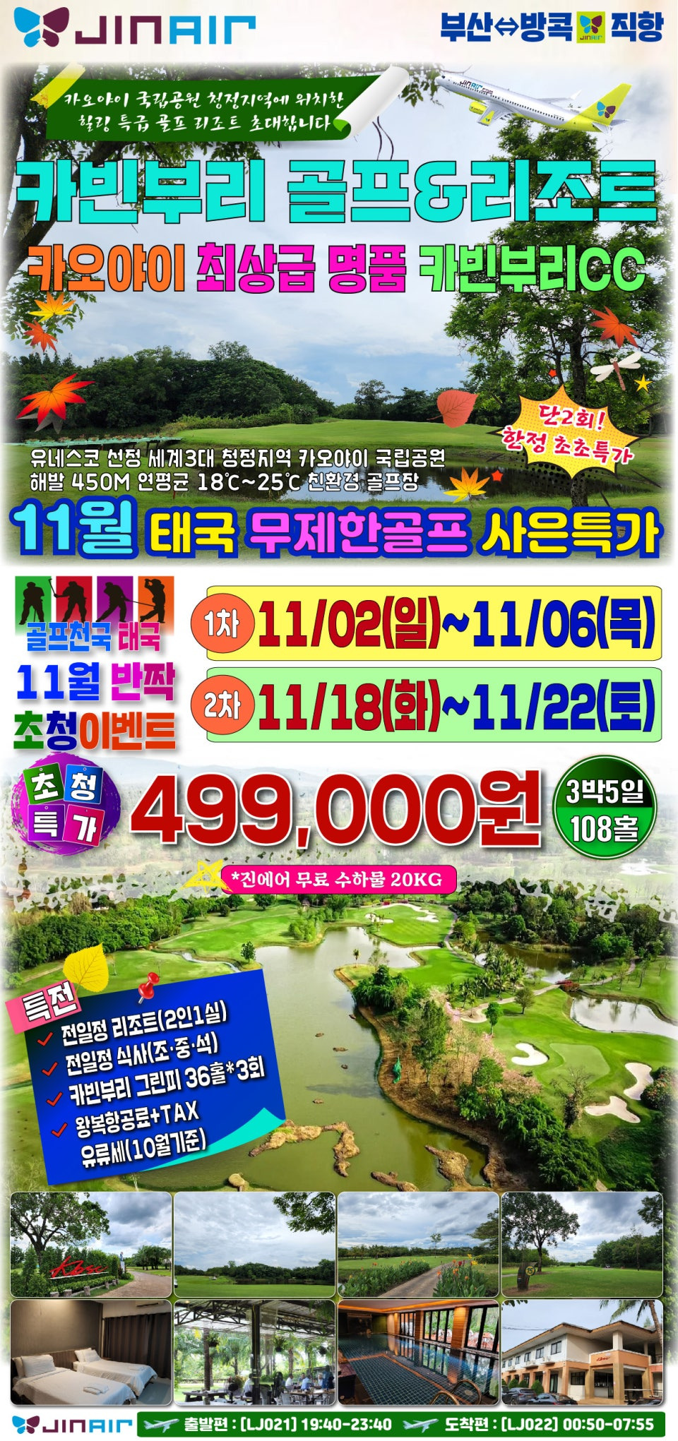 [부산출발특가 해외골프] 499,000원! 카오야이 카빈부리 CC 108홀 특가! 2인 출발 & 청정지역 라운딩 가치 분석 본문