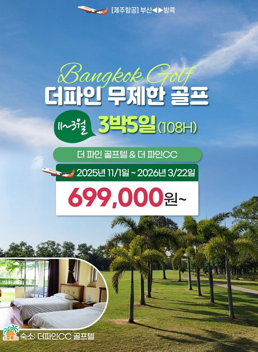 | [부산출발특가 해외골프] 499,000원! 카오야이 카빈부리 CC 108홀 특가! 2인 출발 & 청정지역 라운딩 가치 분석 (0) | 2025.10.23 |
