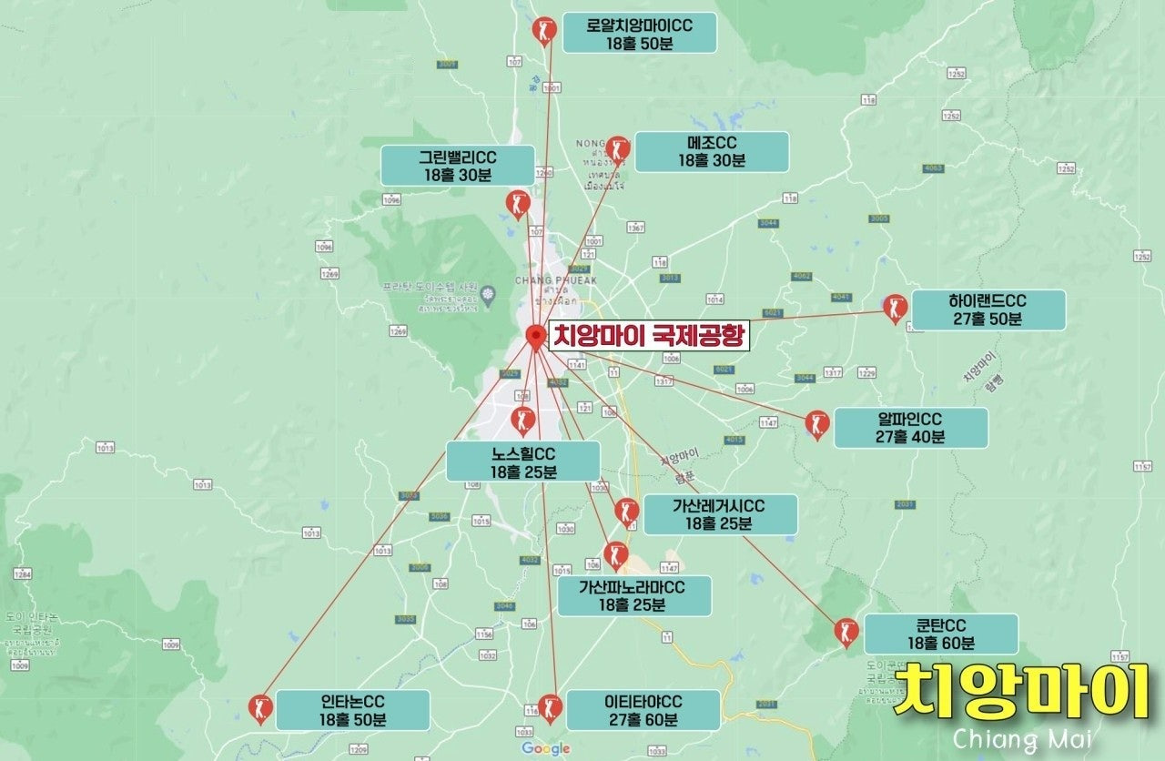 - 👑 명문 라인업: 노스힐CC, 로열CC, 파노라마CC, 쿤탄CC 등 치앙마이 인기 명문 코스만 엄선하여 지루할 틈 없는 3색 라운딩을 즐깁니다. (파노라마CC는 호수 주변 절경 코스로 유명!)