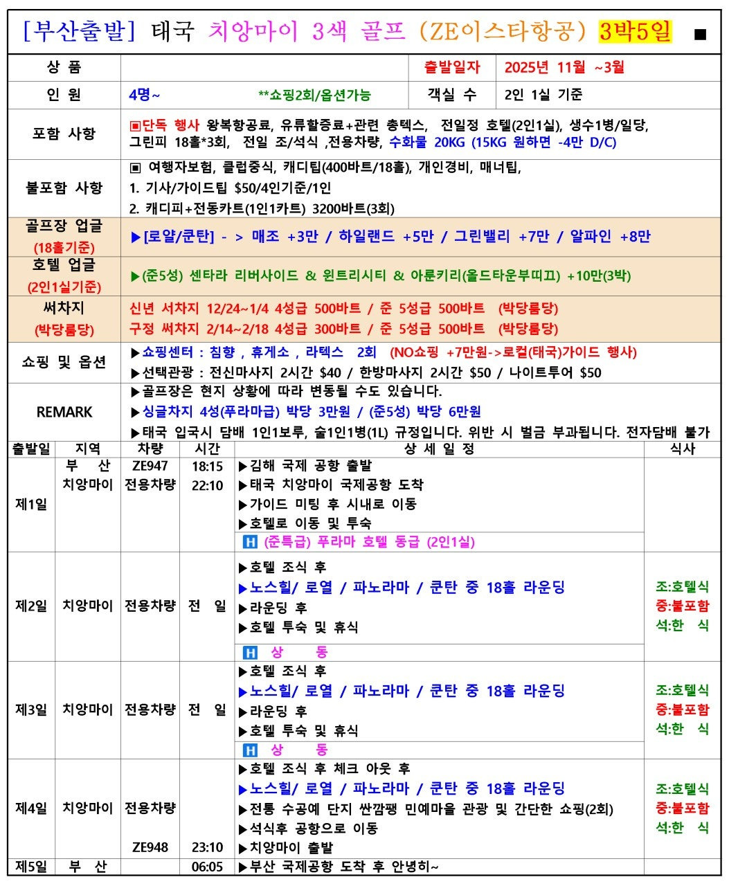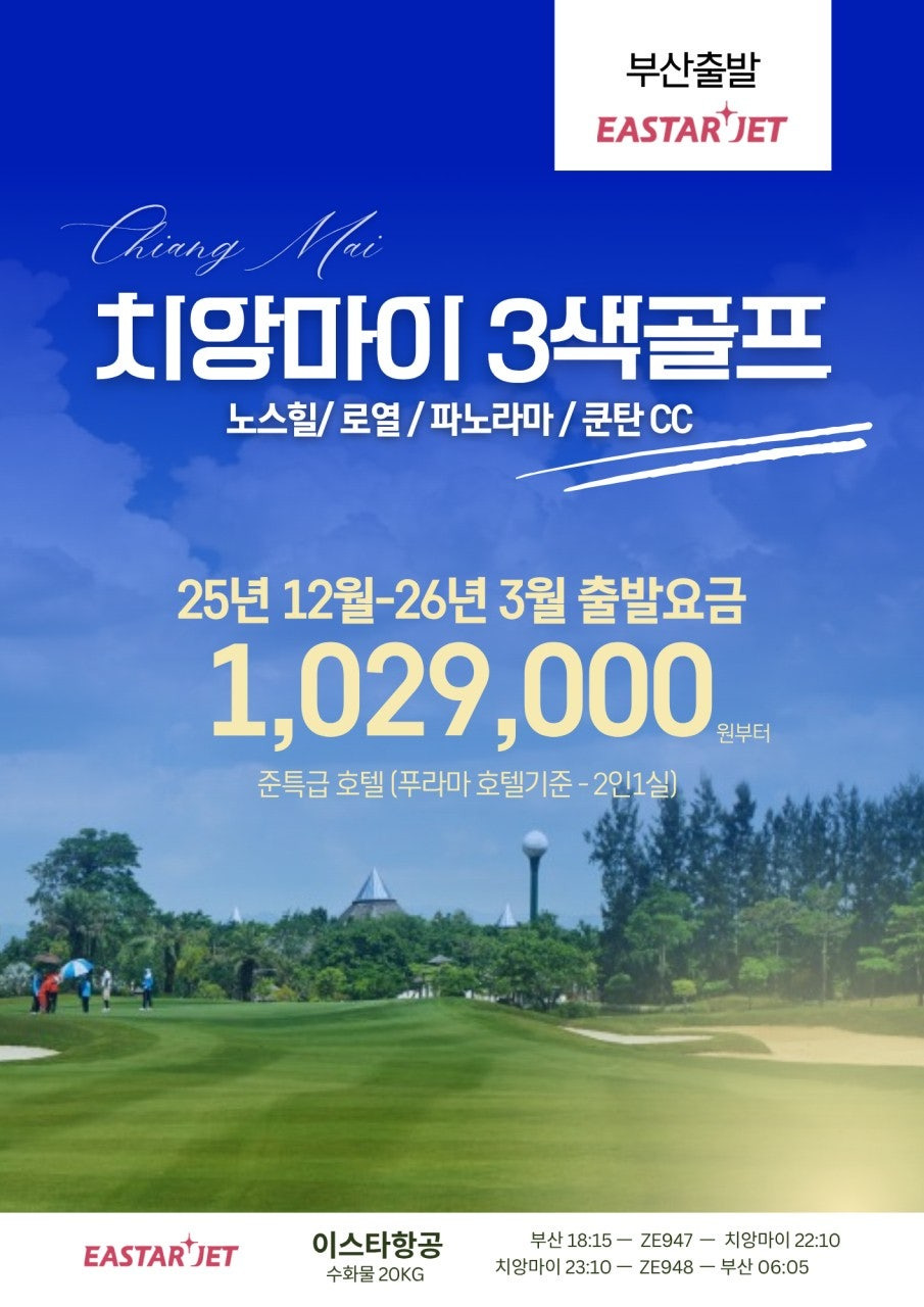 #치앙마이골프 #102만원특가 #이스타항공 #부산직항골프 #노스힐CC #로열CC #파노라마CC #마야몰 #골프수하물20KG #미쉐린도시 #해피투어 #이지숙실장 #치앙마이3색 #겨울골프 #10월발권#부산출발해외골프추천 #부산출발해외골프 #부산직항해외골프#해피투어 #특가해외골프#땡처리해외골프 #해피투어