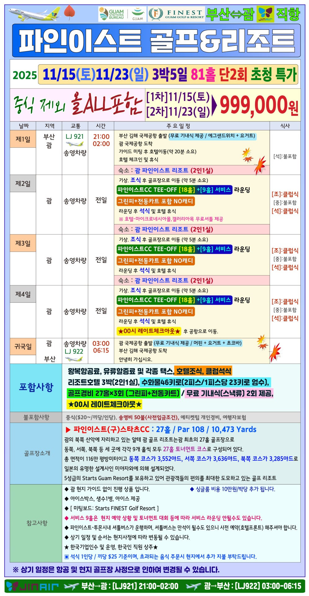 11월 15일(토), 23일(일) 단 2회만 진행되는 특가이므로, 괌 골프를 계획했다면 즉시 예약해야 합니다.