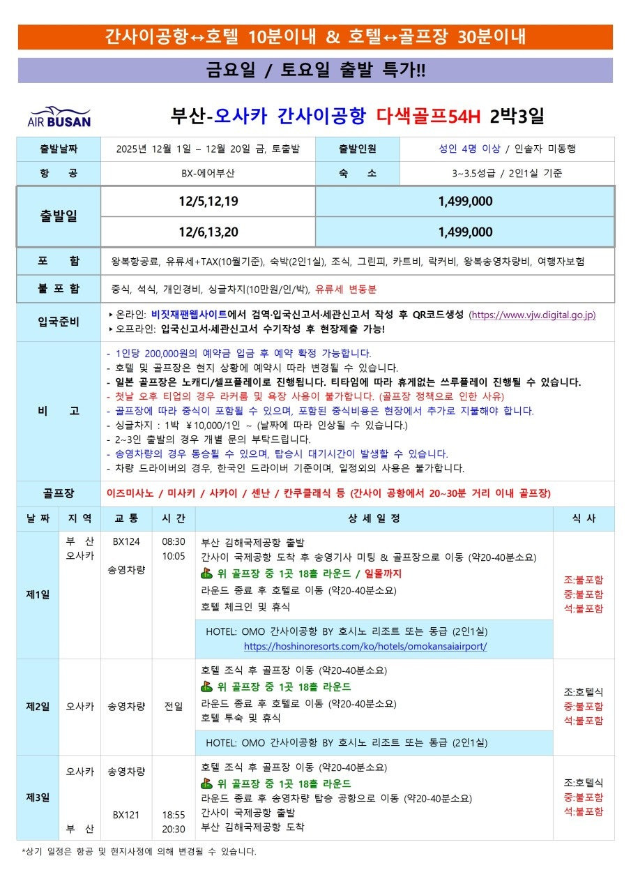 #오사카골프 #OMO간사이공항 #호시노리조트 #54홀라운딩 #주말골프특가 #미사키CC #사카이CC #반노천탕 #린쿠아울렛 #해피투어 #이지숙실장 #부산출발골프 #일본골프 #명문코스 #124만원#부산출발일본골프#부산툴발해외골프#해피투어