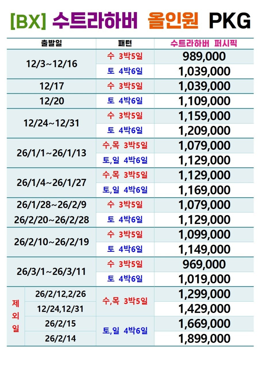 - 🛌 숙소의 품격: 시내에 위치한 특급호텔, 수트라하버 퍼시픽 3박 투숙! 최고의 시설과 서비스로 편안한 휴식을 보장합니다.