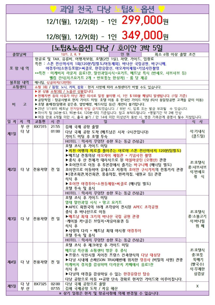 - 💰 가격 혁명: 299,000원! (12/1, 2, 8, 9 단 네 날짜 한정!) 지금이 다낭 떠날 진짜 기회입니다.