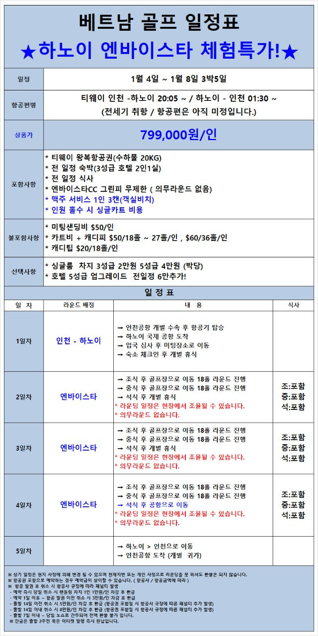 #하노이골프 #무제한골프 #79만원골프 #엔바이스타CC #8인한정 #맥주서비스 #5성급업그레이드 #하노이특가 #해외골프 #해피투어 #이지숙실장 #티웨이항공 #베트남골프 #골프캠프 #여행핫딜