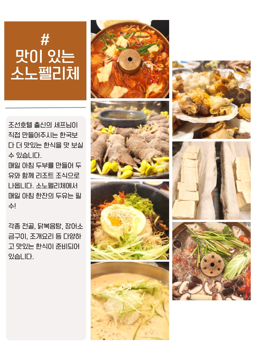 ✔ 결론: 이 상품은 899,000원대라는 파격적인 가격으로 소노펠리체라는 럭셔리 브랜드를 경험하며, 맛있는 한식까지 즐길 수 있습니다. 2인 출발 보장이므로, 동반자와 함께 럭셔리한 휴가를 계획하는 분들께 최적입니다.