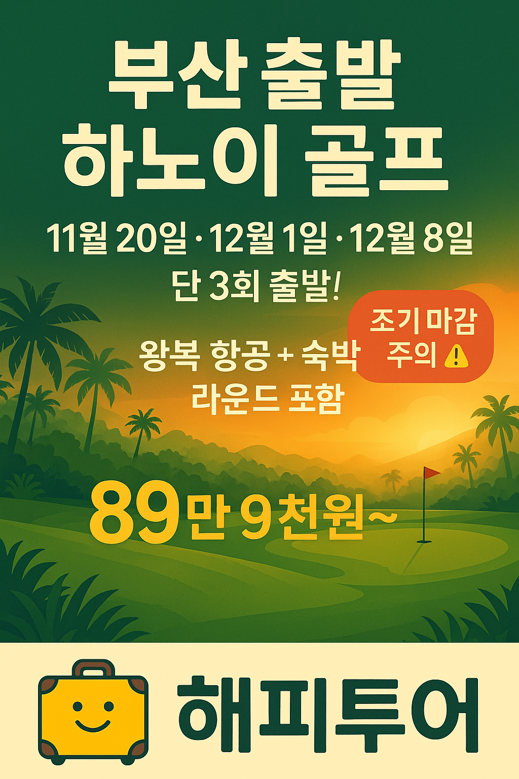 「부산출발해외골프특가♥하노이골프」하노이 소노펠리체 골프 899,000원 특가! 2인 출발 & 미식/숙박 조건 심층 분석 (단 3회 한정) 본문
